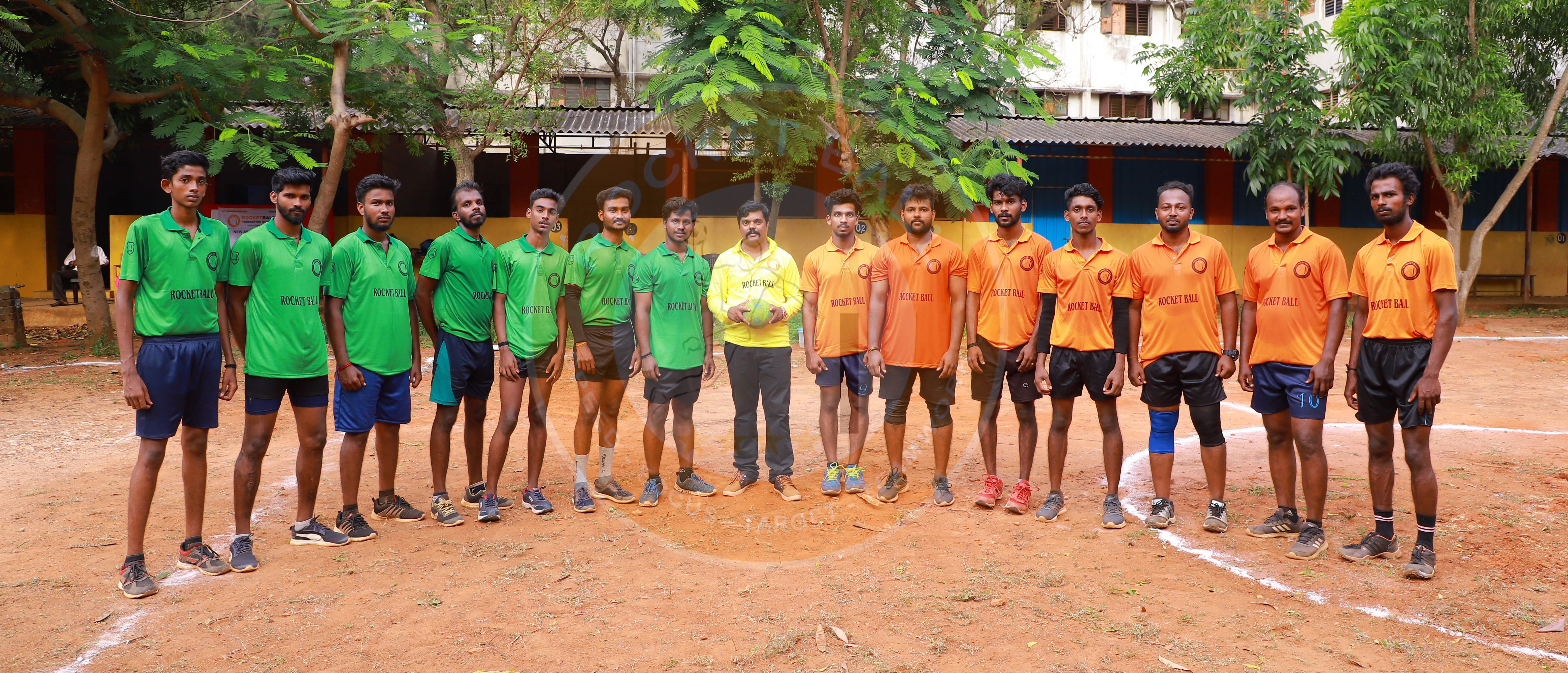 Rocket ball is new sports in outdoor game. Consisting of two teams, competing to who can score the most goals, by throwing the ball into the competing teams post, in a match. The rule of score Post Ball varies a bit, player throw the ball in Post in competing teams post, the ball hit the post and return come to any side of the ground, once ball touch the ground means Thrower Team Get Two Point, else ball catch to same team player means get 4 points. Once Ball Catch to Opposite team player means Thrower is out. Out means players is not need to go outside of the ground, that player is not permission to throw the ball in Post. He is just defence and support player.