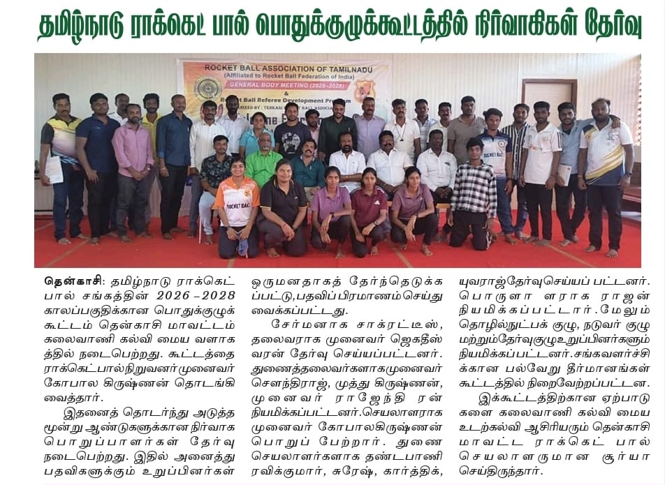 02-04-2026 - Trademark Status of Rocket Ball – Accepted | Under 16 National Championship in Maharashtra on 08-05-2026 to 10-05-2026 | Under 19 National Championship in Punjab at September 2026 | Senior National Championship in Haryana
